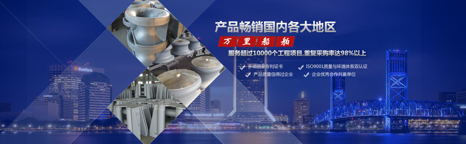 泰州市萬里船舶機械制造有限公司位于姜堰市西郊橋頭工業(yè)集中區(qū),東臨寧靖鹽高速公路,南傍寧啟鐵路及328國道,距泰州火車站10公里,交通十分便利。 本公司是一家研制生產(chǎn)各類船用系泊設備、舾裝設備的專業(yè)廠家,所生產(chǎn)產(chǎn)品品種齊全、質量可靠。其中導纜器、導纜滾輪、導纜孔、帶纜樁、棄錨器、人孔蓋、導鏈滾輪廣泛應用于國內(nèi)各大船廠,同時外銷日本、韓國、西班牙、意大利、臺灣等國家及地區(qū)。本公司已獲得中國(CCS)船級社認可、英國(LR)船級社認可,美國(A···